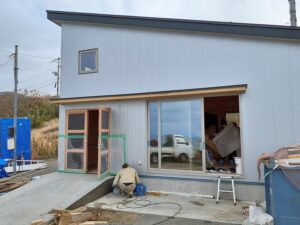 前回、新潟市西蒲区まで無垢フロアの資材搬送をしたお家。